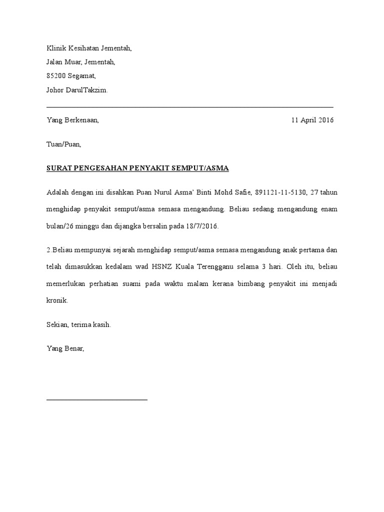 Contoh Surat Pengesahan Kesihatan Lihat Letter Website